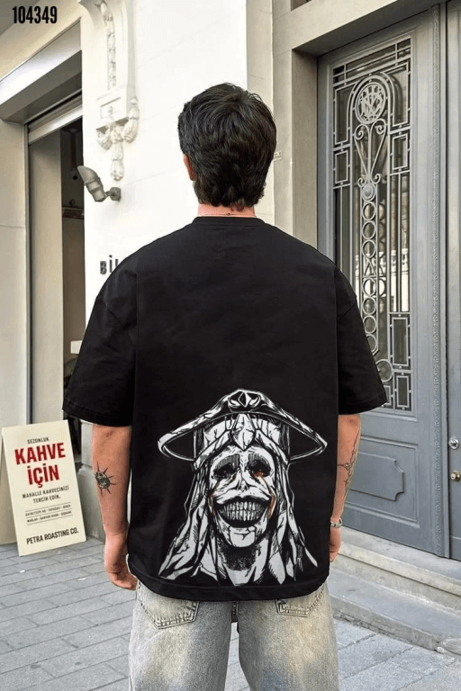 Erkek Bisiklet Yaka Baskılı Oversize T-Shirt - Siyah